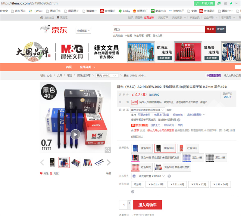 商品名称:晨光(M&G)A2中油笔W3002 按动圆珠笔 陶瓷笔头原子笔 0.7mm 黑色40支